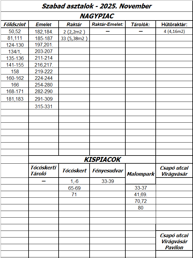 Piacokkal, vásárokkal kapcsolatos közlemények