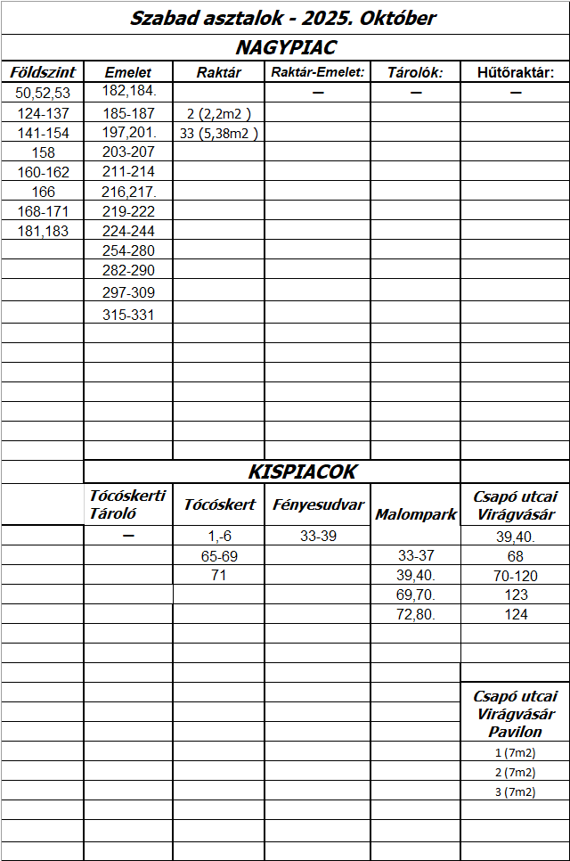 Piacokkal, vásárokkal kapcsolatos közlemények